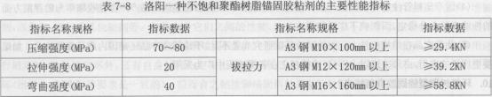 (3)洛陽(yáng)一種不飽和聚酯樹脂錨固膠的性能列入表7-8中。