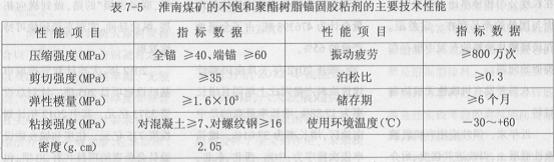 (1)淮南煤礦的不飽和聚酯樹脂錨固膠粘劑的性能參見表7-5。