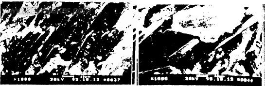 圖1 經表面處理的碳纖維摩阻材料的SEM 照片 圖2 未經表面處理的碳纖維摩阻材料的SEM 照片