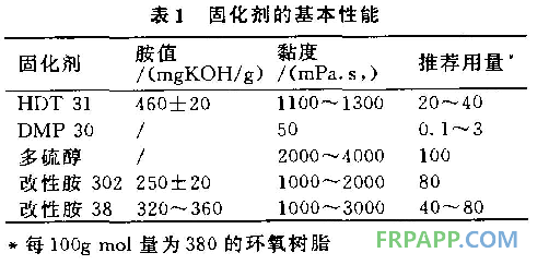 廠;多硫醇,德國進口樣品;改性脂肪族聚胺一302,江蘇;改性脂肪族聚胺-38,江蘇;偶聯劑KH-550,武漢大學化工廠;硅微粉(600目),湖州硅微粉廠;輕質CaC03,湖北;氣相Sio2,Cab -o-sil。