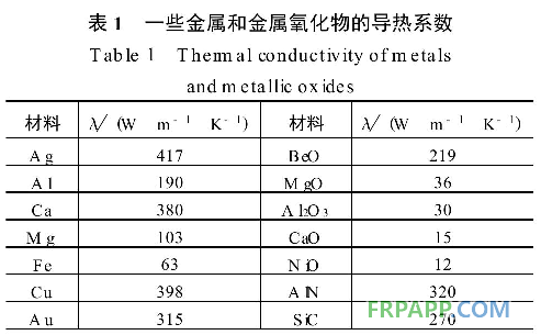 傳統的導熱物質多為金屬如Ag,Cu,Al和金屬氧化物如A 120,Mg0,Be0以及其它非金屬材料如石墨,炭黑,Si3N。,AN。部分材料的熱導率見表1。另據報道導,電有機物質包括聚乙炔、聚亞苯基硫醚、聚噻吩等也具有良好的導熱性,且用導電性有機物質作填料可以改善材料的相容性、加工性、導熱性能,并可以減小材料的密度,且導電有機物質在不純的情況