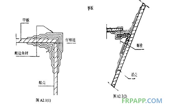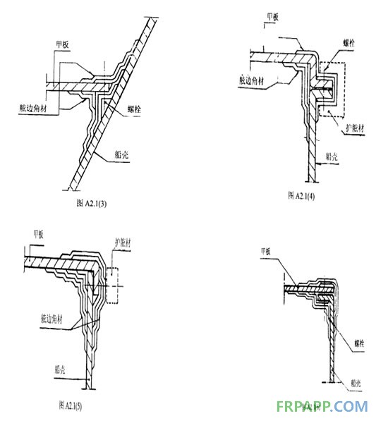 (6)帽型骨材現場糊制有肘板角連接的方式,見圖A3.3(4)所示;