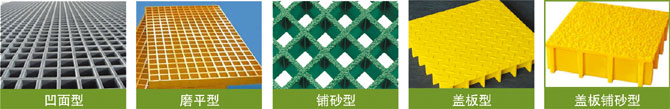 玻璃鋼格柵根據使用用途和外觀可以分為凹面型、磨平型、表面鋪砂型、蓋板型、蓋板鋪砂型五種類型,每種類型均可生產紅、黃、藍、綠、黑、灰六種常規顏色,用量較大的客戶可根據客戶提供的標準色生產指定的色彩。類型及色彩如下圖所示。