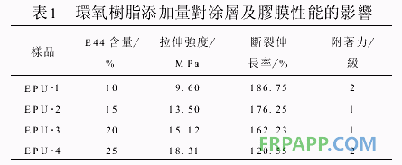 2.3 環氧樹脂添加量對涂層及膠膜性能的影響
