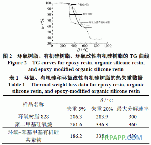 2. 3 環氧改性有機硅樹脂的熱重(TG)分析