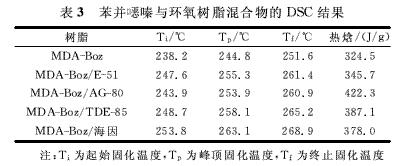2.3.2 苯并噁嗪/環氧樹脂共混物的DSC分析