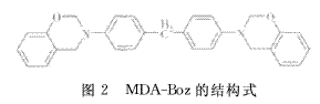 本實驗所用的苯并噁嗪為MDA型苯并噁嗪(簡稱MDA-Boz),其結構式如圖2。
