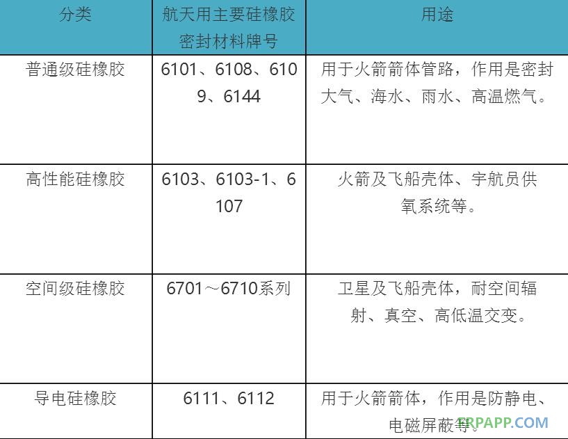 表:航天工業用硅橡膠密封材料主要牌號及用途