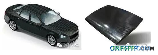 意大利康隆集團為寶馬M3轎車生產的汽車頂蓋,如圖49所示。寶馬公司和SGL聯合開發的,采用HP-RTM工藝制造的寶馬i3車身Life模塊車身結構,如圖50所示。寶馬7系列轎車側圍車頂加強板、車頂中橫梁結構均采用HP-RTM工藝制作,如圖51所示。本特勒-西格里(Benteler-SGL)采用漢高公司的樂泰(Loctite)樹脂基體采用HP-RTM生產的復合材料板簧重量可減輕65%,如圖52所示;本特勒-西格里采用HP-RTM工藝生產的復合材料車用支桿,如圖53所示。克勞斯瑪菲采用漢高Loctite Max3樹脂生產的汽車車頂,如圖54所示。蒂芬巴赫公司生產的HP-RTM復合材料后備箱內襯板,如圖55所示。上海惠柏新材公司采用RA-8920A /B生產的汽車車頂如圖56所示。
