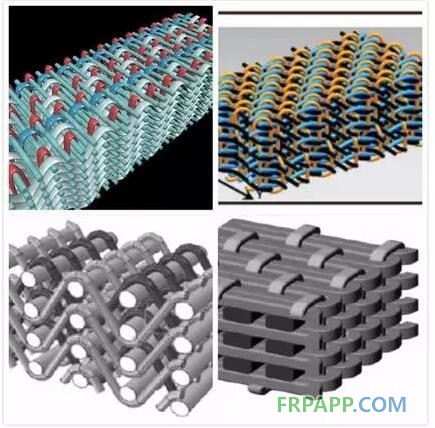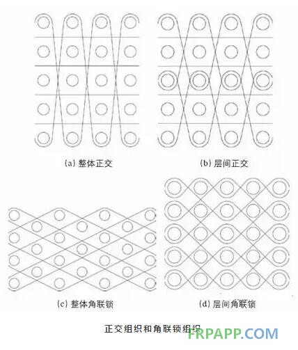 根據接結紗與經紗層、緯紗層交織方式和傾斜角度的不同,正交組織又分為整體正交和層間正交,角聯鎖組織分為整體角聯鎖和層間角聯鎖。改變經紗和緯紗的層數、接結紗的浮長和分布,就可得到各種各樣的正交結構和角聯鎖結構。