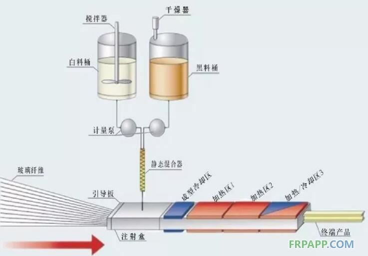 拉擠工藝下,雙組份供料系統(tǒng)實(shí)現(xiàn)了樹脂的全封閉供料,避免了樹脂與人和環(huán)境的直接接觸;